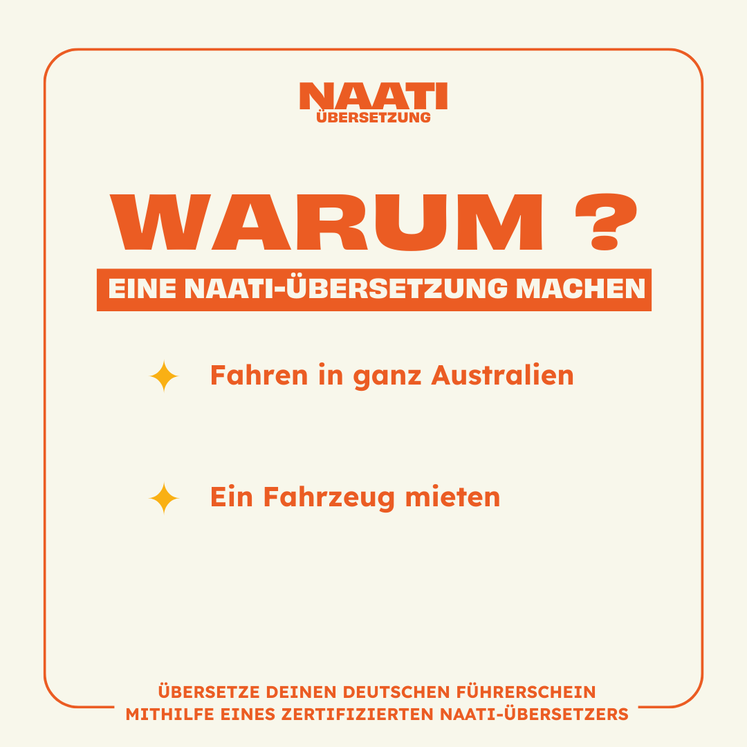 ⚠️ Wichtiger Hinweis: Im Bundesstaat New South Wales (NSW) werden NAATI-Übersetzungen nicht mehr für die Umschreibung eines Führerscheins akzeptiert.
